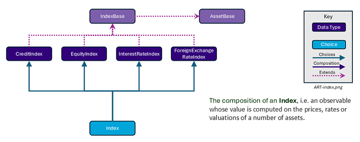 Each of the choice values are defined as data types within the model and each also extends a common base type